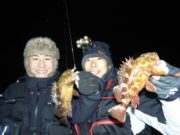 ナイト便はメバル&ガシラ狙いに! 開始早々に28センチのナイスなメバルを釣り上げその後もナイスサイズを連発!! 合間には良いサイズのアジやガシラも混ざりつつ潮が変わるとメバルの当たりは減りアコウ狙いに! 水温も大分下がりもう駄目かなーと思ってると最後の最後にアコウもゲット!!