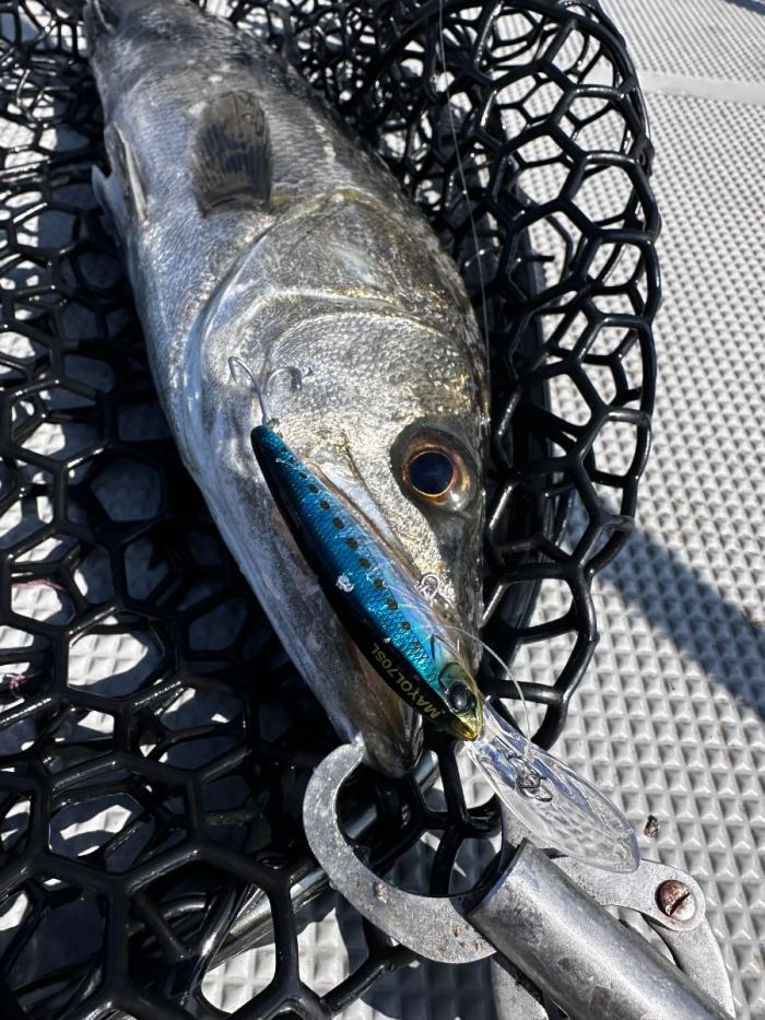 ボートでずっと着いていき獲れたのは85センチのブリでした! ラインもザラザラでルアーも割れる程の死闘でしたが慣れてるだけあって流石でした!