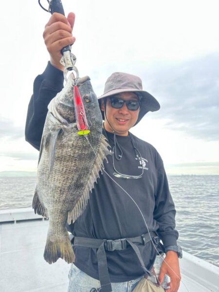 もうそろそろ釣れるはず?のブリトップ便に! 粘ってるとラスト流しに水面爆発するも引きが変? まさかのクロダイでした!笑 チヌビッグトップでした!