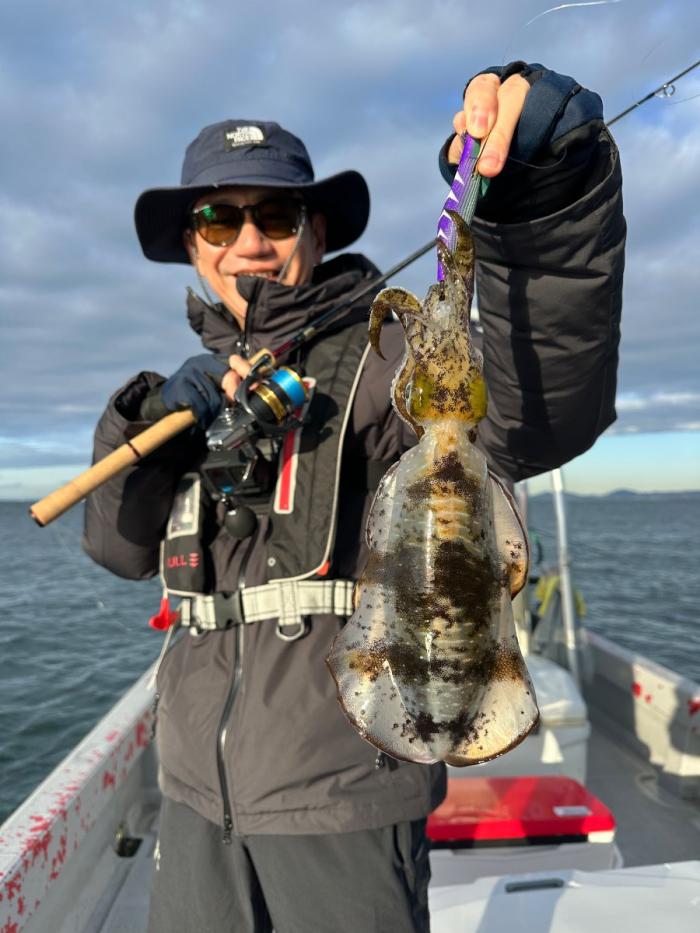 朝一はティップランでアオリイカ狙いに! 開始早々反応よく良いサイズのアオリイカキャッチ!