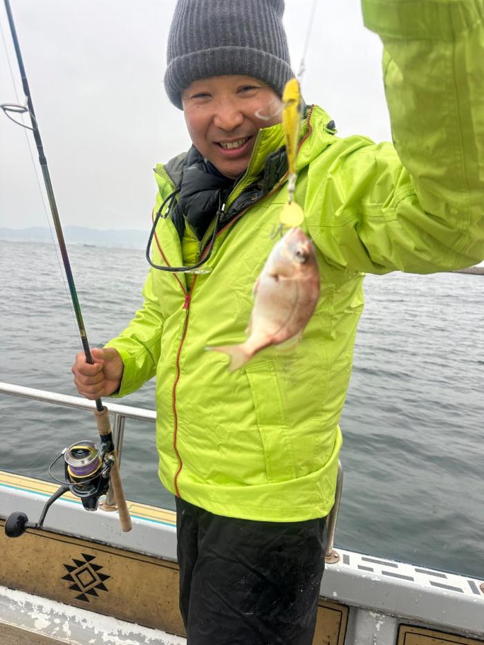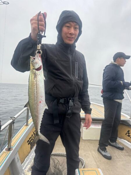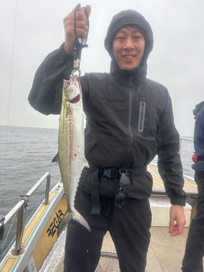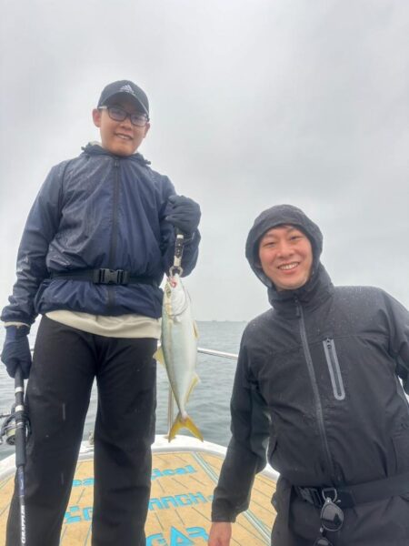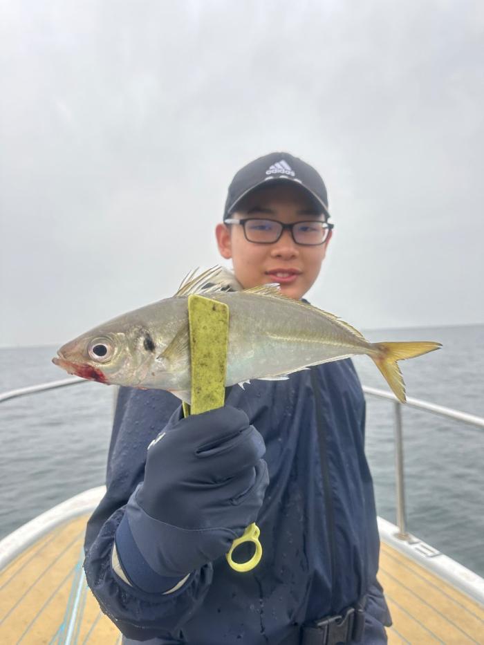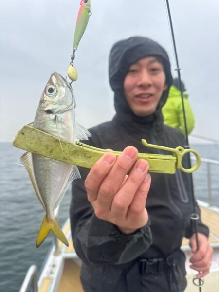 雨でしたが風無しべた凪の釣れそうな日に! 日頃サビキ釣りオンリーの方で初めて船に乗って初めてキャスティング便に!