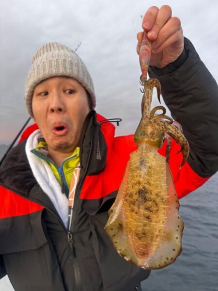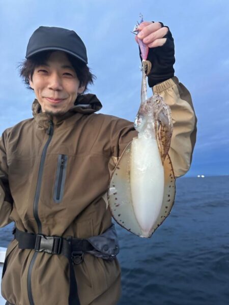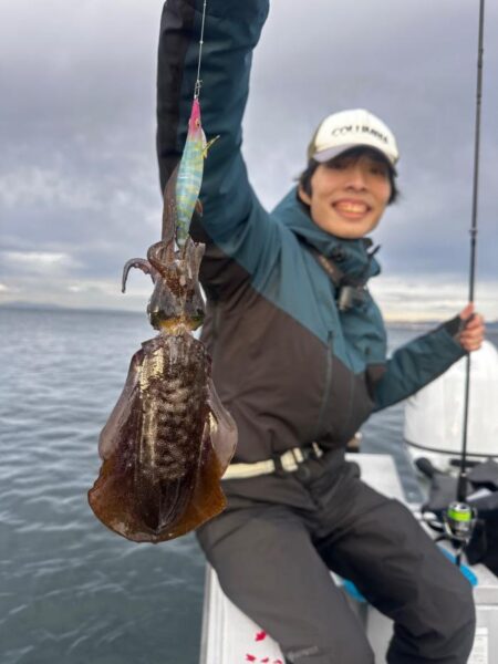 朝一はイカ狙いから! 日頃陸っぱりでやられてるので何も言わずにであっさりキャッチ! 反応も良く全員安打でキャスティングに!