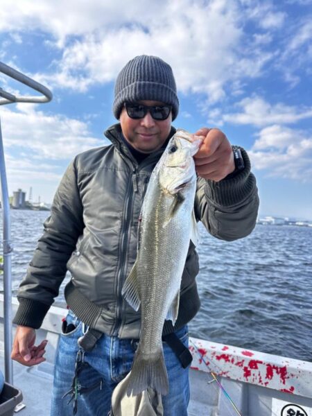 風強くなる予報なので湾内でシーバス狙いに! デイゲームでは初めての事で何としても1本と! 穴撃ちメインで投げてもらうと無事キャッチ!