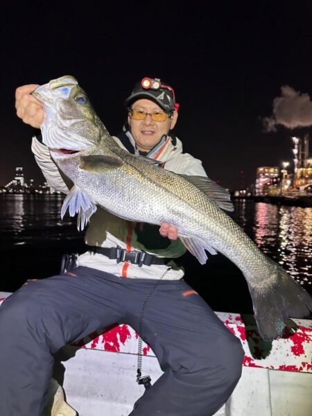 1発大物狙いでナイトシーバス便で出船! 小さいサイズも居なく冬のような雰囲気に! それでも諦めずに投げ続けてると水面爆発で最高の1本出ました! 惜しくもランカーなかったですが盛り上がりました♪