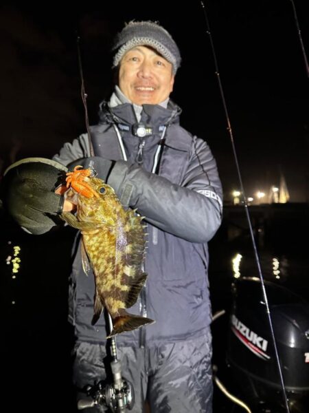 前半はシーバス狙いから!産卵で抜けてったタイミングなのでセイゴばかりかと思いきや開始からナイスサイズのシーバスキャッチ!しかもダブルヒットに!その後反応無しなんでロックフィッシュ狙いに!