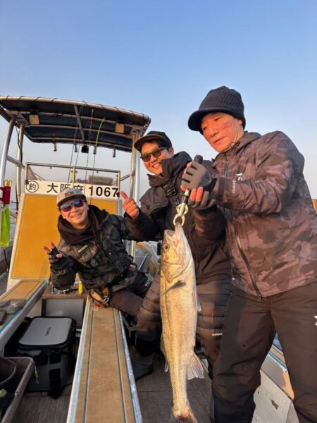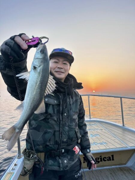 1月とは思えないポカポカ陽気な朝便に! ほぼ初めてシーバス狙う方もいましたが朝一はこの時期恒例のセイゴラッシュでコツを掴んでもらいがスタートに!
