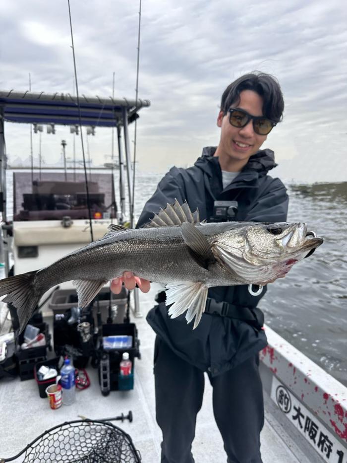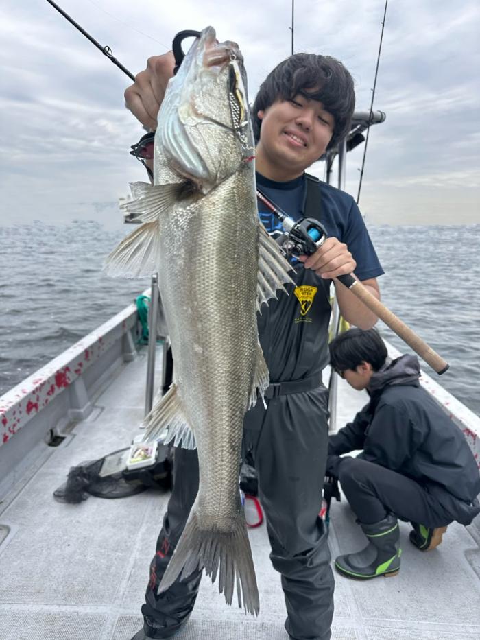 ボートシーバス初チャレンジ! 日頃陸っぱりやられてるので感覚はすぐに掴み魚からの当たりも増えたところでシーバスキャッチ!