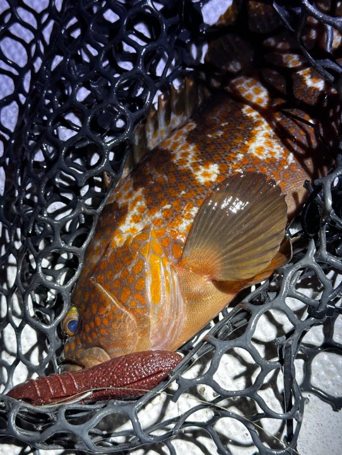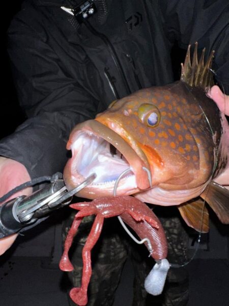 時合い到来なのか2本目は45cm前後のBIGアコウも! ラストはアコウでも密かなブームな高比重ワームのカバースキャットで35ぐらいのを!